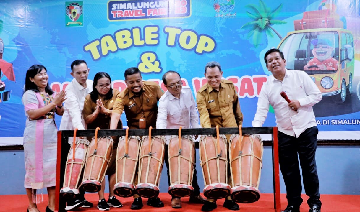 Launching Simalungun Travel Fair, Table Top dan Fam Trip Desa Wisata itu ditandai dengan pemukulan gondrang oleh Bupati Simalungun bersama Kadis Kebudayaan dan Pariwisata Sumut Zumry Sulthony, Kadis Budparekraf Simalungun M Fikri F Damanik, Ketua PHRI Robert Pardede dan undangan terbatas.