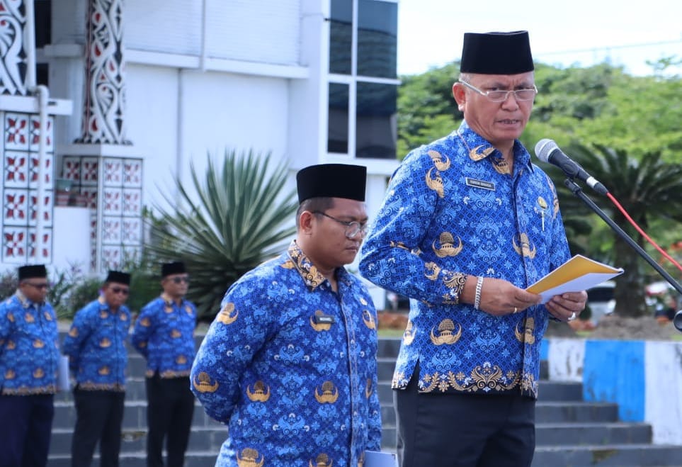 Bupati Simalungun dalam amanat tertulisnya yang di bacakan oleh Sekda mengucapkan selamat kepada para ASN yang menerima SK Pencantuman Gelar.