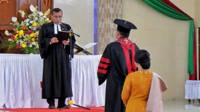 Pelantikan Ketua STT HKBP tersebut di lakukan oleh oleh Ephorus HKBP Pdt Robinson Butarbutar di Gereja HKBP Siantar Kota Pematang Siantar, Selasa (7/11/2023).