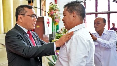 Kabarsimalungun.com || SIMALUNGUN -Bupati Simalungun Radiapoh Hasiholan Sinaga menghadiri pelantikan Pdt Dr. Sukanto Limbong sebagai Ketua Sekolah Tinggi Theologia (STT) HKBP Pematang Siantar masa bakti 2023-2027.