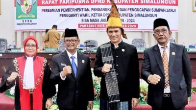 Kabarsimalungun.com || SIMALUNGUN – Bupati Simalungun diwakili Wakil Bupati H Zonny Waldi menghadiri rapat paripurna DPRD Simalungun dalam rangka peresmian pemberhentian, pengangkatan dan pengucapan sumpah/janji Pengganti Antar Waktu (PAW) wakil ketua DPRD Simalungun sisa mas jabatan 2019-2024.