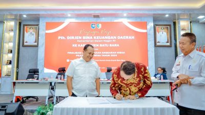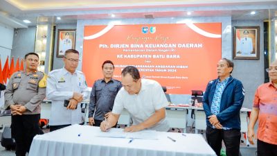 Penandatanganan NPHD Pilkada 2024 ditandatangani oleh Bupati Batu Bara Ir. H. Zahir, M.AP., bersama Ketua KPU Batu Bara Erwin dan Ketua Bawaslu Batu Bara Muhammad Amin yang disaksikan oleh Plh. Dirjen Bina Keuangan Daerah Kemendagri Dr. Horan Mauritz Panjaitan dan Staf Khusus Kemendagri Kastorius Sinaga.