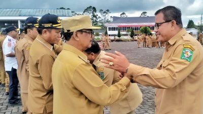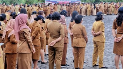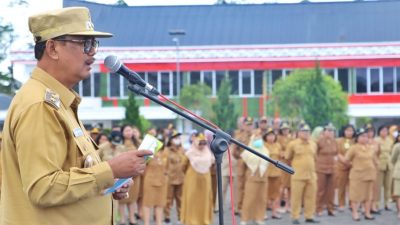 Kabarsimalungun.com || SIMALUNGUN || Pasca libur Tahun Baru 2024, Aparatur Sipil Negara (ASN) di lingkungan Pemkab Simalungun melaksanakan apel gabungan di halaman Kantor Bupati Simalungun, Pamatang Raya, Sumut, Selasa (2/1/2024).