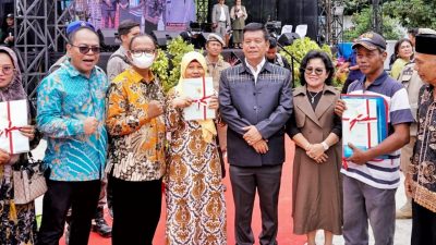 Acara yang juga dihadiri antara lain oleh Forkopimda, Sekda bersama para pejabat tinggi Pratama, administrator, pengawas dan para ASN, tokoh agama, tokoh adat dan tokoh masyarakat dan undangan lainnya itu dirangkai dengan pemberian tali asih kepada Lansia, anak yatim dan keluarga kurang mampu, pemberian sertifikat tanah, serta kartu kepesertaan BPJS ketenagakerjaan oleh Bupati dan Wakil Bupati Simalungun.(tim-red)