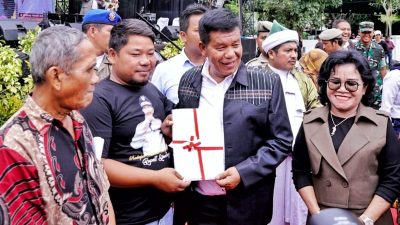 “Dengan kebersamaan, apapun halangan, apapun beban, akan bisa kita lewati kalau kita tetap bersama sama dan memiliki visi misi yang sama untuk membangun kampung halaman kita ini Tano Habonaron Do Bona,”ujar Bupati mengakhiri.