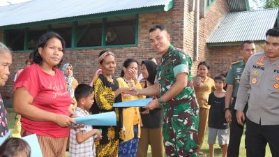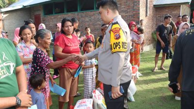 Usai melakukan pengecekan, sebanyak 6 kepala keluarga (KK) yang mengalami banjir di Dusun X Desa Tanah Tinggi Kecamatan Air Putih unsur Forkopimda Batu Bara memberikan bantuan sosial (bansos) berupa sembako.(Martua)