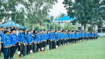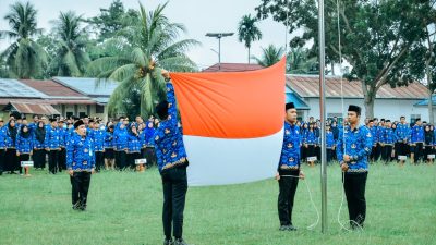 pada Pemilu 2024. Upacara digelar di Lapangan Bola Kaki Blok 8, Kelurahan Lima Puluh Kota, Kecamatan Lima Puluh, Rabu (17/01/2024).