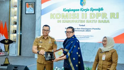 “Pelaksanaan pemilu dan pilkada serentak 2024 agar dapat berjalan damai dan ditargetkan angka pastisipasi pemilih mencapai 85 persen,” harap Pj. Bupati Nizhamul saat menerima kunjungan spesifik Komisi II DPR RI di Aula Rumah Dinas Bupati, Komplek Inalum, Tanjung Gading, Kecamatan Sei Suka, Selasa (30/01/2024).
