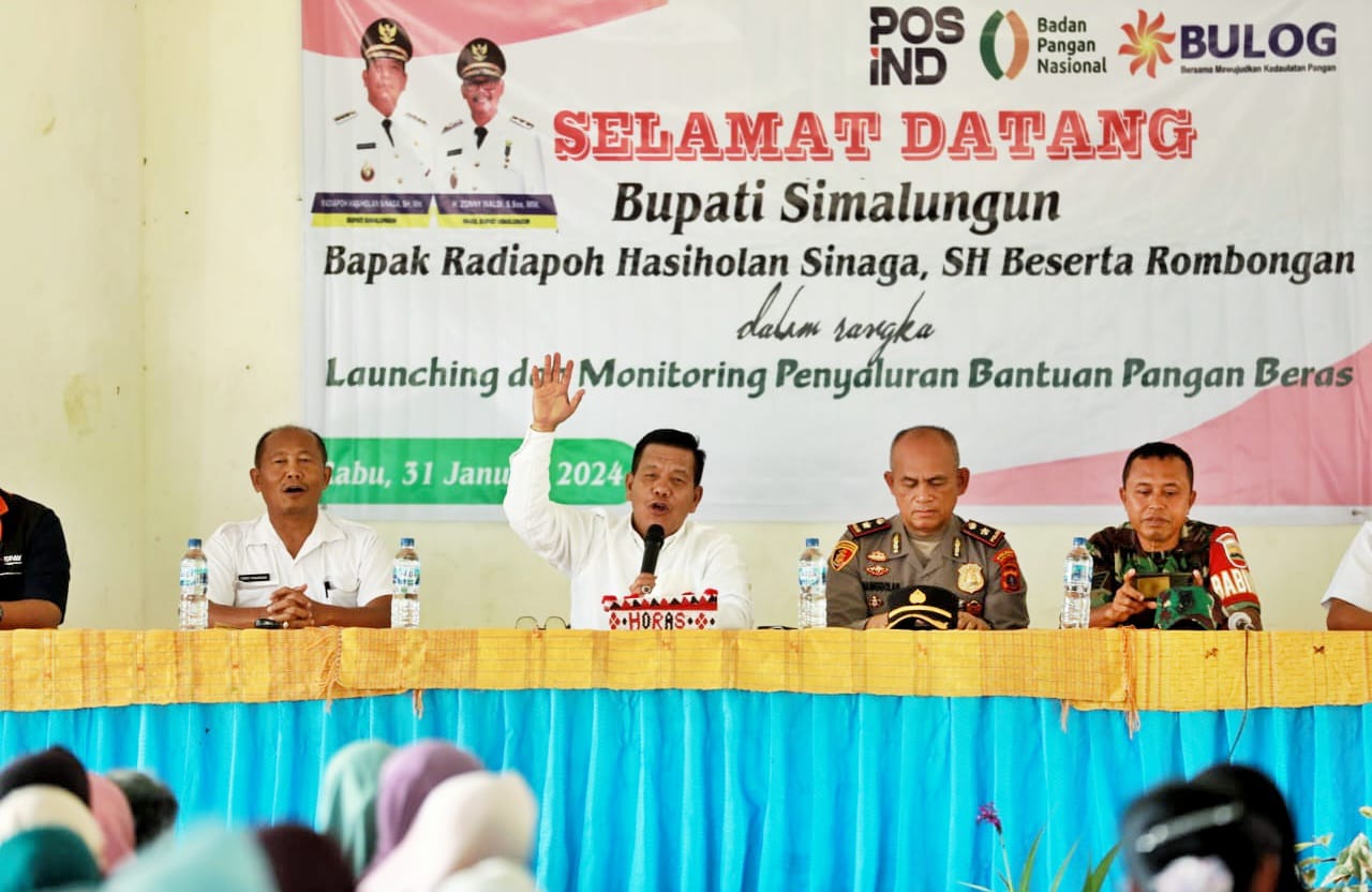 Launching dan monitoring penyaluran Bantuan CPP berupa beras, secara simbolis dilakukan pada tiga titik lokasi oleh Bupati Simalungun Radiapoh Hasiholan Sinaga, Rabu (31/1/2024).