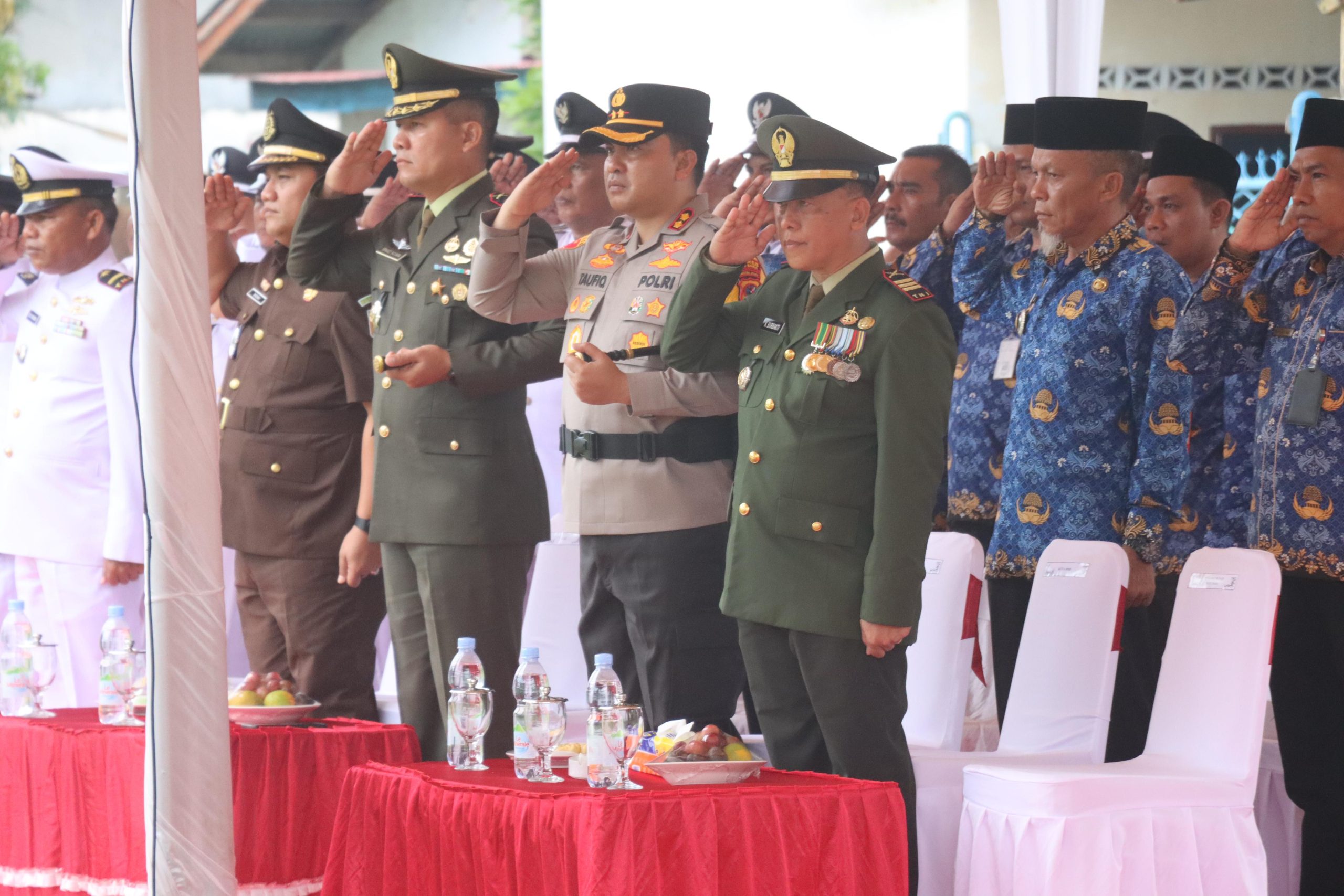 Kegiatan ini juga dihadiri Pj. Bupati Batu Bara Nizamhul, SE.,MM sebagai Inspektur Upacara dan Dandim 0208/As diwakili oleh Danramil 03 Lima Puluh Kapten Inf. Kataras Surbakti, Danyon 126/KC Letkol Inf. Fernando Batubara, Kajari Kab. Batu Bara diwakili oleh Pasie Intel Kajari Kab. Batu Bara An. Donny harahap, Danlanal Tanjung Balai Asahan diwakili oleh Letda laut (T) R. Simanjuntak, Kabag Kesbangpol Kab. Batu Bara An. Renol Asmara, serta unsur Forkopimda Lainnya.