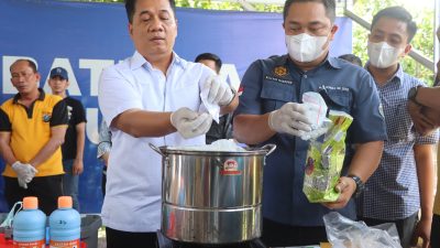 Kabarsimalungun.com || BATU BARA — Kapolres Batu Bara AKBP Taufiq Hidayat Thayeb pimpin pemusnahan barang bukti narkotika di halaman Polres Batu Bara di Lima Puluh, Jumat (27/9/2024).