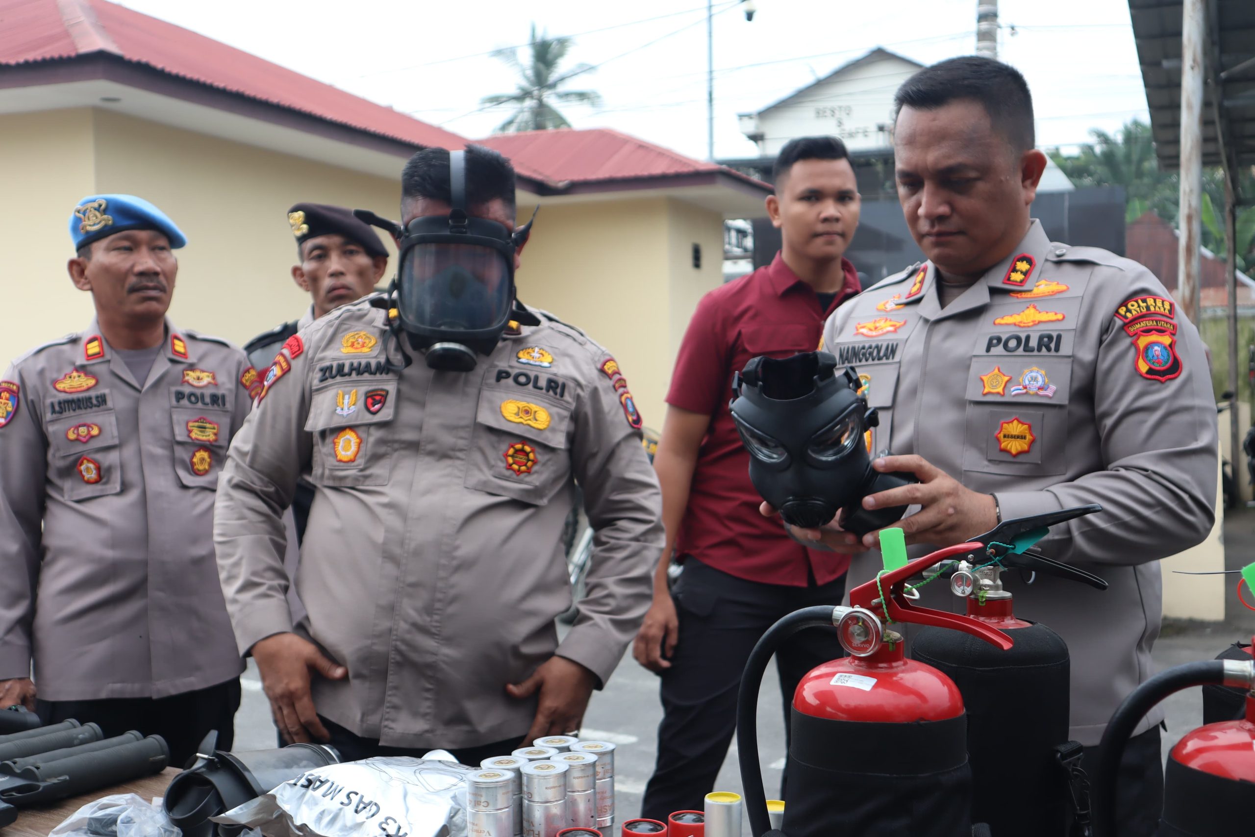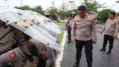 Kabarsimalungun.com || BATU BARA — Kapolres Batu Bara AKBP Doly Nelson Nainggolan berserta pejabat utama melaksanakan pengecekan pelatihan pelayanan aksi unjuk rasa menjelang May Day,Rabu(30/04/2025) sekira pukul 09.00 Wib di halaman lapangan Apel Polres Batu Bara.