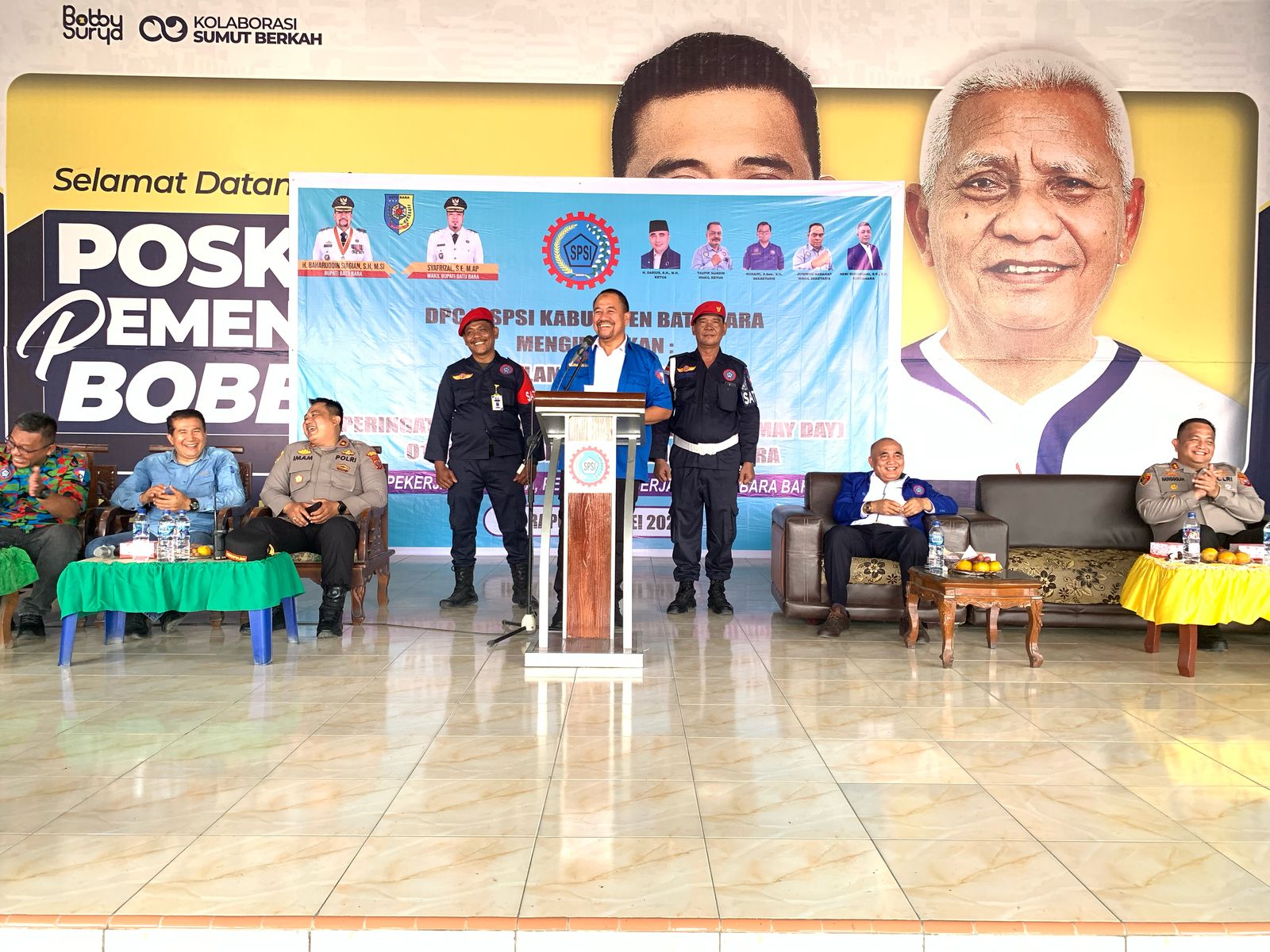 DPC K.SPSI Kabupaten Batu Bara yang dipimpin oleh Ketua DPC K.SPSI Batu Bara Darius S.H., M.H melaksanakan Peringatan Hari buruh Internasional (May Day) 2025 dengan mengangkat Tema “Pekerja Sejahtera,Pengusaha berjaya, Batu Bara Bahagia” tepatnya di Pendopo Surya Jalinsum Desa Titi Payung Kecamatan Air Putih, Kamis (01/05/2025) sekira pukul 11.20 Wib.