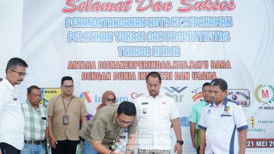 Kabarsimalungun.com || BATU BARA –– Dalam rangka mendukung penurunan angka pengangguran di Batu Bara, Bupati Batu Bara H. Baharuddin Siagian, SH, M.Si menghadiri kegiatan Pelatihan Tenaga Kerja serta Penandatanganan Nota Kesepahaman Bersama.