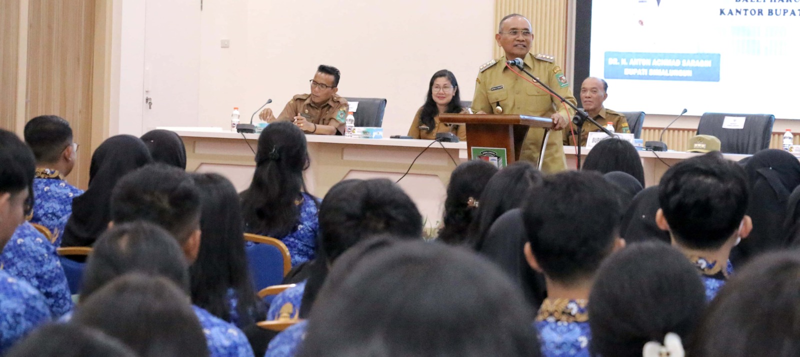 Kabarsimalungun.com || SIMALUNGUN – Bupati Simalungun, Anton Achmad Saragih menyerahkan 524 Surat Keputusan (SK) Pengangkatan Calon Pegawai Negeri Sipil (CPNS) kepada CPNS di lingkungan Pemerintah Kabupaten (Pemkab) Simalungun formasi Tahun 2024.