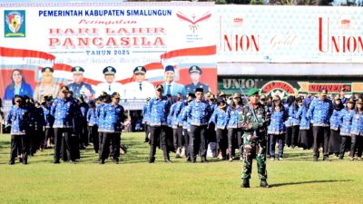 Kabarsimalungun.com || SIMALUNGUN – Pemerintah Kabupaten (Pemkab) Simalungun menggelar upacara peringatan Hari Lahir Pancasila (Harlah) Tahun 2025, dipusatkan di lapangan Koramil 08/Bangun Jl. Asahan Nagori Pantoan Maju Kecamatan Siantar, Simalungun, Sumut, Senin (2/6/2025).
