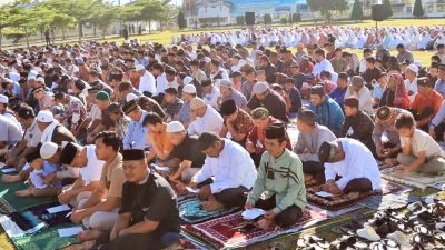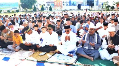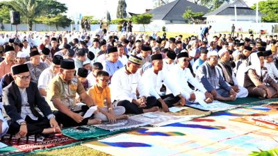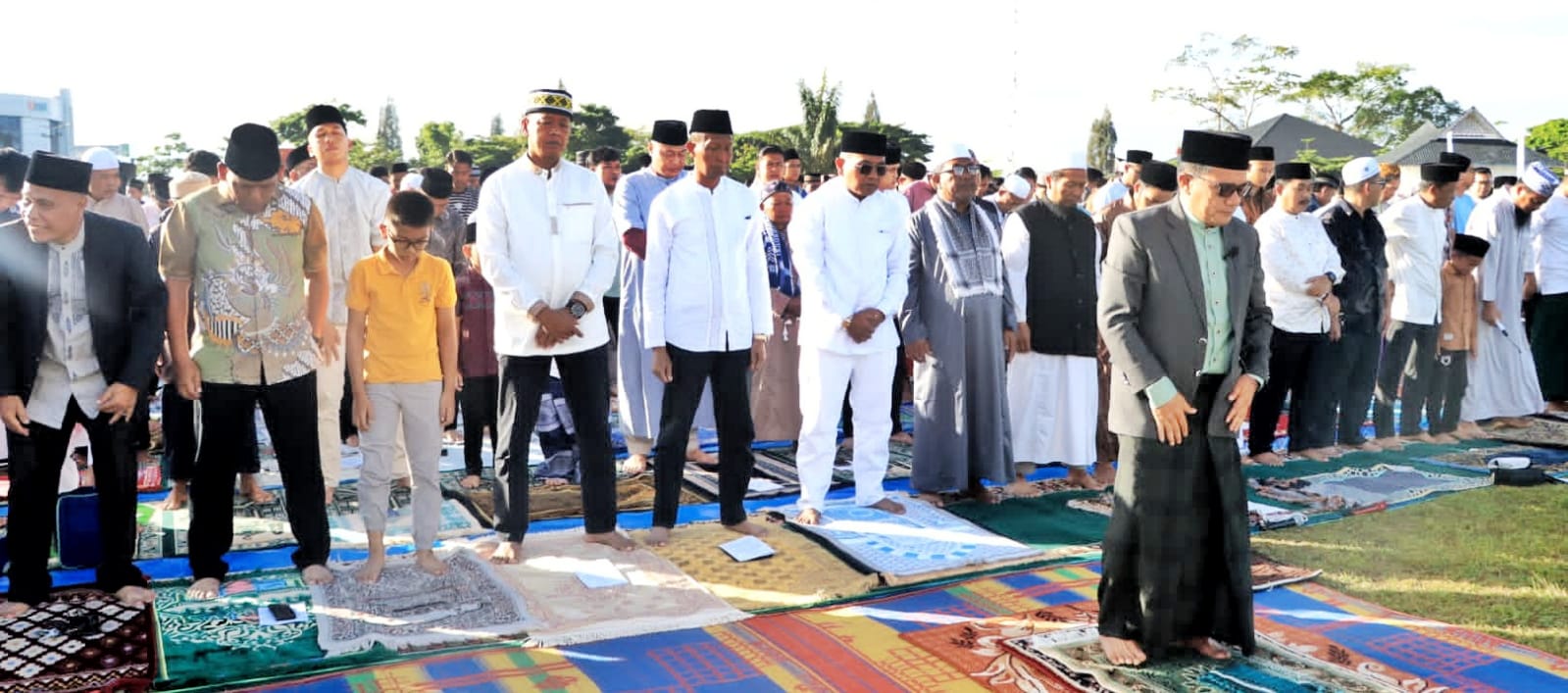 Kabarsimalungun.com || SIMALUNGUN, Pematang Raya – Bupati Simalungun, Anton Achmad Saragih bersama Ketua TP PKK, Ny.Darmawati Anton Achmad Saragih dan Forkopimda melaksanakan Sholat Id Idul Adha 1446 H/2025 M, di halaman Kantor Bupati Simalungun, Pamatang Raya, Sumut, Jum’at, (6/6/2025).