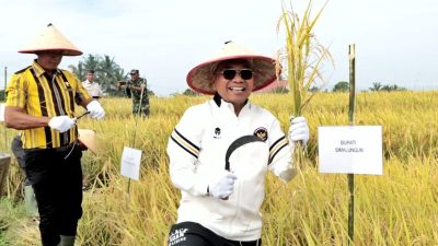 “Kegiatan panen raya padi sawah hari ini adalah sebagai wadah untuk memicu para petani dalam peningkatan produktivitas padi di Tahun 2025 dan memacu ketahanan nasional,”ujar Bupati.