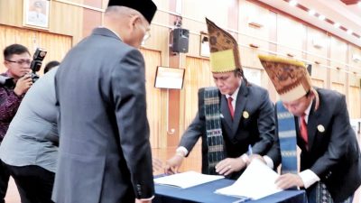 Pejabat pimpinan tinggi Pratama yang dilantik ini juga melakukan penandatangan fakta integritas dihadapan Bupati Simalungun.