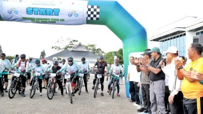 Pelepasan peserta Geobike Kaldera Toba #8 tersebut berlangsung di halaman Kantor Bupati Simalungun, Pamatang Raya, Simalungun, Sumut, Sabtu (27/6/2025.