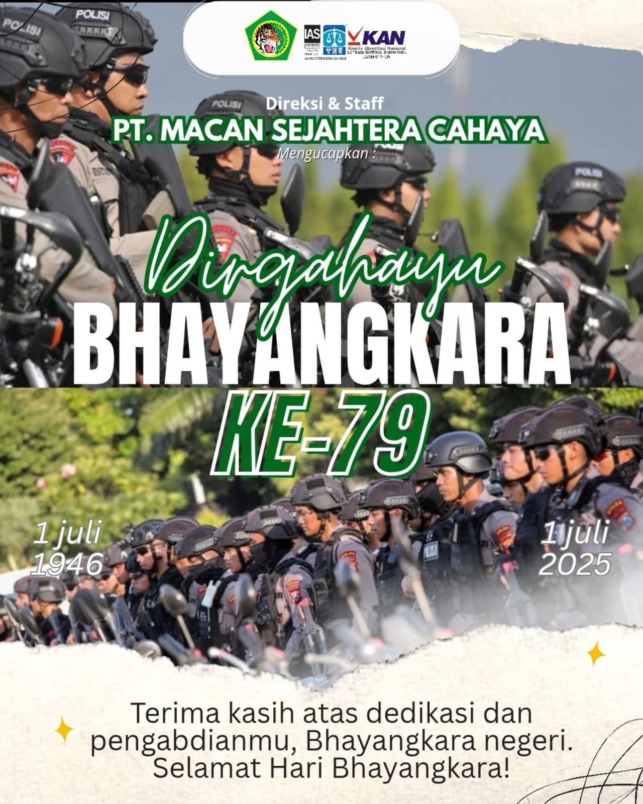 Di Hari Bhayangkara ke-79 tahun 2025 ini kami panjatkan doa untuk Polri agar tetap semangat menjaga keadilan. Semoga Polri terus tumbuh menjadi institusi yang adil, bersih, dan tangguh di tengah tantangan zaman.