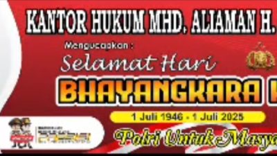 Kabarsimalungun.com || MEDAN SUMUT – Selamat hari bhayangkara tahun 2025. Semoga Polri semakin presisi, dicintai rakyat, dan selalu diberi kekuatan dalam menjaga NKRI. Di Hari Bhayangkara ini, kami berdoa semoga Polri semakin kuat dalam menjaga keamanan dan ketertiban bangsa.
