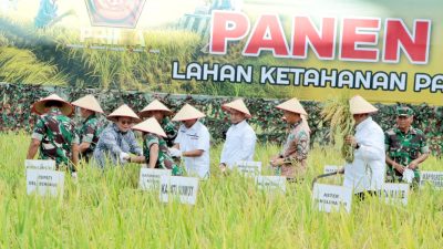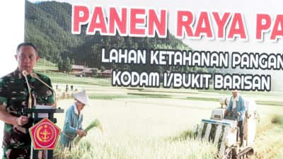 Kabarsimalungun.com || DELISEDANG – Bupati Simalungun, Dr H Anton Achmad Saragih dan Wakil Bupati, Benny Gusman Sinaga bersama-sama hadir mengikuti kegiatan Panen Raya Padi di lahan Ketahanan Pangan Kodam I/BB bersama Panglima TNI, Jenderal TNI Agus Subiyanto.