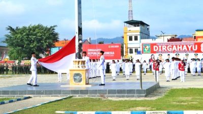 Pasukan Pengibar Bendera Pusaka (Paskibraka) menjalankan tugas penurunan bendera dengan penuh tanggung jawab dan kedisiplinan tinggi. Prosesi sakral ini diiringi lagu kebangsaan “Indonesia Raya”, dan disaksikan oleh ratusan peserta upacara yang terdiri dari unsur TNI, Polri, ASN, pelajar, serta masyarakat umum.