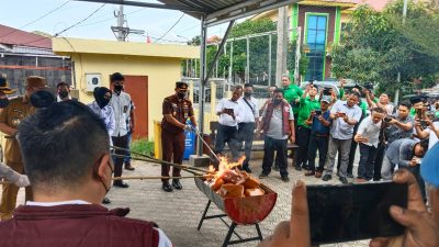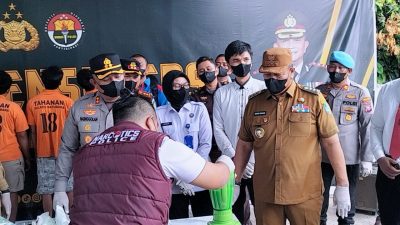 Kabarsimalungun.com || BATU BARA — Bupati Batu Bara Baharuddin Siagian pimpin pemusnahan barang bukti nakoba bersama Kapolres Batu Bara AKBP Doly Nelson HH Nainggolan, unsur Forkopimda dan Kepala BNNK Batu Bara AKBP Arnis Syafi’i Yanti, barang bukti yang di musnahkan jenis narkotika sabu seberat 30 kg, ekstasi seberat 22,4 kg dan daun ganja seberat 25,6 kg, di halaman Satres Narkoba Polres Batu Bara, Senin (25/08/2025) sekitar pukul 10.00 Wib.