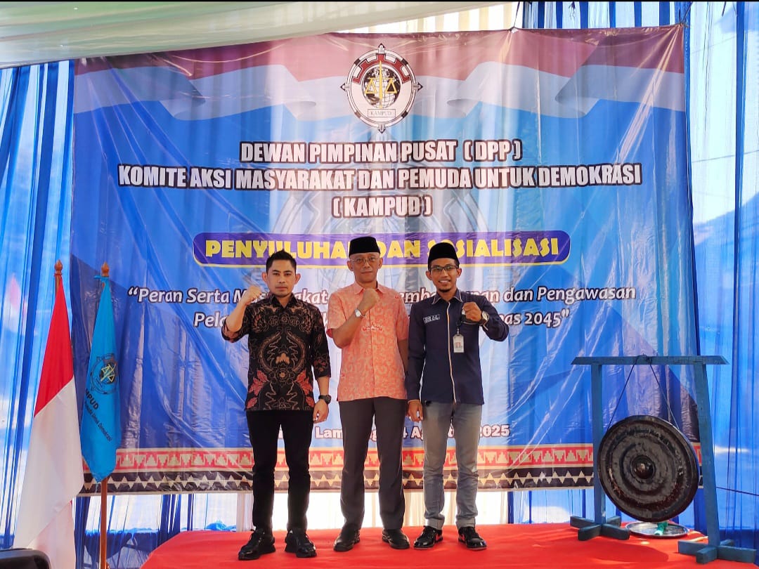 Kabarsimalungun.com || Kota Bandar Lampung – Dewan Pimpinan Pusat (DPP) Komite Aksi Masyarakat dan Pemuda untuk Demokrasi (KAMPUD) menggelar acara penyuluhan dan sosialisasi yang bertajuk, “peran serta masyarakat dalam pembangunan dan pengawasan pelayanan publik menuju Indonesia emas 2045”. Adapun acara tersebut dipusatkan di Kantor DPP KAMPUD di Jalan Pulau Tirtayasa, komplek ruko Griya Bukit Kencana, Kelurahan Campang Raya, Kecamatan Sukabumi, Kota Bandar Lampung pada Minggu (24/8/2025) sekira pukul 9.30 WIB sampai dengan selesai.