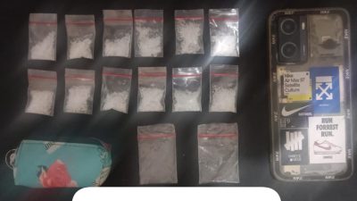 Dari penggeledahan ditemukan barang bukti 12 paket sabu yang disimpan di dalam tas dompet kecil warna biru. Selain itu, disita satu unit ponsel yang diduga sebagai sarana memasarkan dagangannya.