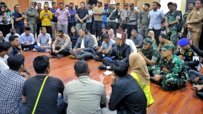 Turut mendampingi Bupati dalam menyambut massa aksi adalah jajaran Forum Koordinasi Pimpinan Daerah (Forkopimda) plus Danrem 022 Pantai Timur, Sekretaris Daerah Mixnon Andreas Simamora, serta sejumlah pejabat pimpinan tinggi pratama di lingkungan Pemerintah Kabupaten Simalungun.
