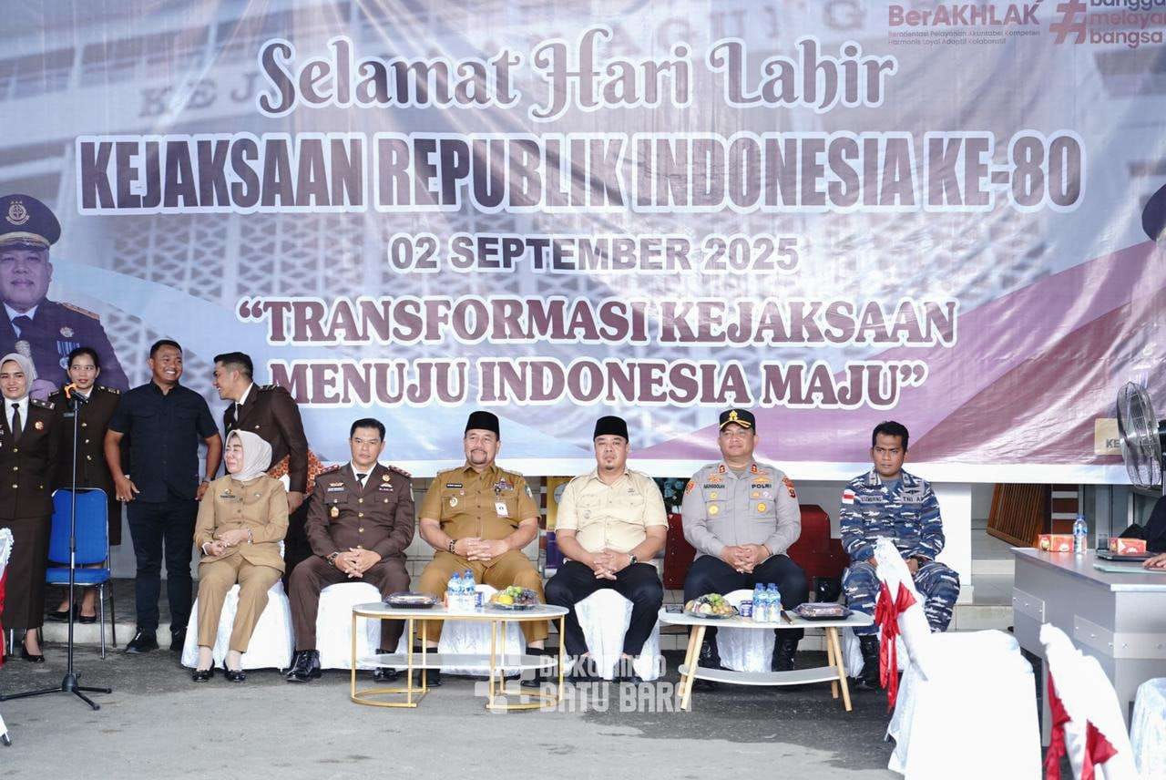 Kabarsimalungun.com || Batu Bara — Bupati Batu Bara Baharuddin Siagian, SH, M.Si bersama Wakil Bupati Batu Bara Syafrizal, SE, M.AP dan Forum Koordinasi Pimpinan Daerah (Forkopimda) Kabupaten Batu Bara menghadiri Peringatan Hari Lahir Kejaksaan Republik Indonesia ke-80 Tahun 2025 yang digelar di Aula Kantor Kejaksaan Negeri Batu Bara, Selasa (2/09/2025).