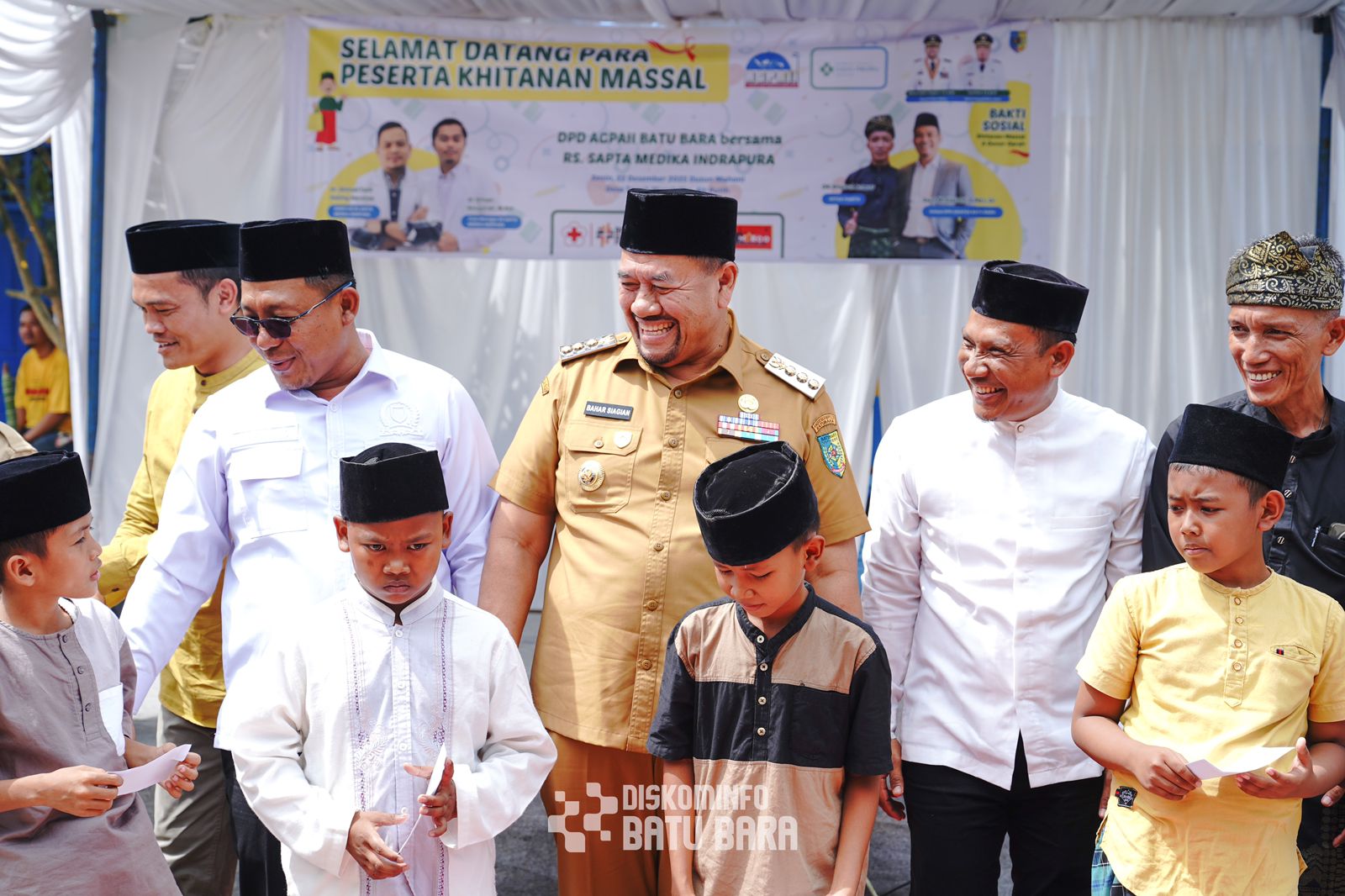 Kabarsimalungun.com || BATU BARA – Bupati Batu Bara H. Baharuddin Siagian, S.H., M.Si., menghadiri bakti sosial khitanan massal dan donor darah yang dilaksanakan di SD Negeri 01 Dusun Mahoni, Desa Tanah Merah, Kecamatan Air Putih, Kabupaten Batu Bara, Senin (22/12/2025).