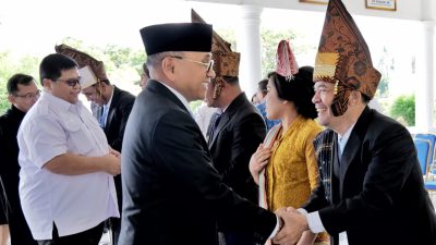 Prosesi pelantikan berlangsung di lingkungan Pendopo Rumah Dinas Bupati Simalungun yang berlokasi di Pamatang Raya, Sumatera Utara, Rabu (31/12/2025). Tiga nama terpilih resmi menerima amanah sebagai anggota Dewas PDAM Tirta Lihou, yaitu Rinton Parulian Damanik, Imman Nainggolan, dan Jamerson Saragih.