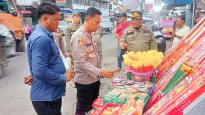 Kabarsimalungun.com || BATU BARA — Polsek Indrapura,Polres Batu Bara melaksanakan patroli gabungan bersama Satpol PP, di wilayah hukumnya.Kapolres Batu Bara AKBP Doly Nelson Nainggolan melalui Kapolsek Indrapura AKP Reynold Silalahi menyampaikan imbauan kepada pedagang petasan untuk tidak menjual kembang api atau petasan yang berpotensi menimbulkan ledakan.