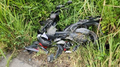 “Saat bersamaan, mobil Ford Ranger BK-8916-GW yang dikemudikan RD (27 tahun) dari arah berlawanan menyenggol motor yang sudah terjatuh, memperparah kecelakaan,” ujar IPDA Yancen.