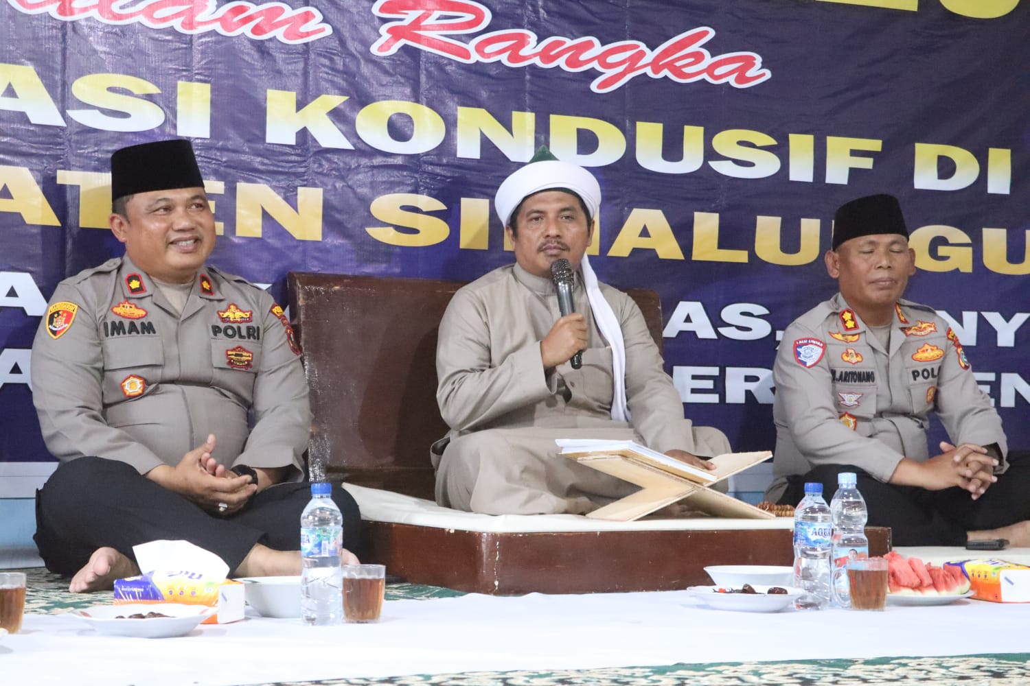 Kasi Humas Polres Simalungun AKP Verry Purba saat dikonfirmasi Senin malam (23/2/2026) sekitar pukul 21.20 WIB menjelaskan rangkaian kegiatan yang padat berkah ini. “Kapolres Simalungun melaksanakan kegiatan Sapa Ramadan Door to Door untuk menciptakan situasi kondusif di wilayah Kabupaten Simalungun. Kegiatan dilaksanakan di Pondok Pesulukan Serambi Babussalam, Nagori Jawa Tongah, Kecamatan Hatonduhan, dimulai pukul 16.00 WIB hingga selesai,” ujar AKP Verry.