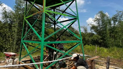 Sejak pagi hari, para personel Satgas TMMD terlihat bekerja bersama-sama memasang instalasi pipa yang terhubung dengan tandon air. Tahapan ini menjadi bagian penting dalam proses penyediaan air bersih, sehingga distribusi air dari sumur bor nantinya dapat berjalan dengan lancar dan menjangkau kebutuhan warga.