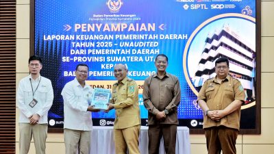 Kabarsimalungun.com || MEDAN – Bupati Simalungun, Dr. H. Anton Achmad Saragih, bersama Ketua DPRD, Sugiarto, serta didampingi Sekretaris Daerah, Mixnon Andreas Simamora, telah menyampaikan Laporan Keuangan Pemerintah Daerah (LKPD) Tahun 2025 (Unaudited) kepada Badan Pemeriksa Keuangan (BPK) Perwakilan Provinsi Sumatera Utara.