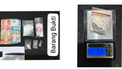 Dari tersangka kedua, petugas menyita barang bukti berupa satu plastik klip besar berisi sabu dengan berat brutto 1,58 gram, satu plastik putih sebagai tempat penyimpanan, serta satu unit handphone android.